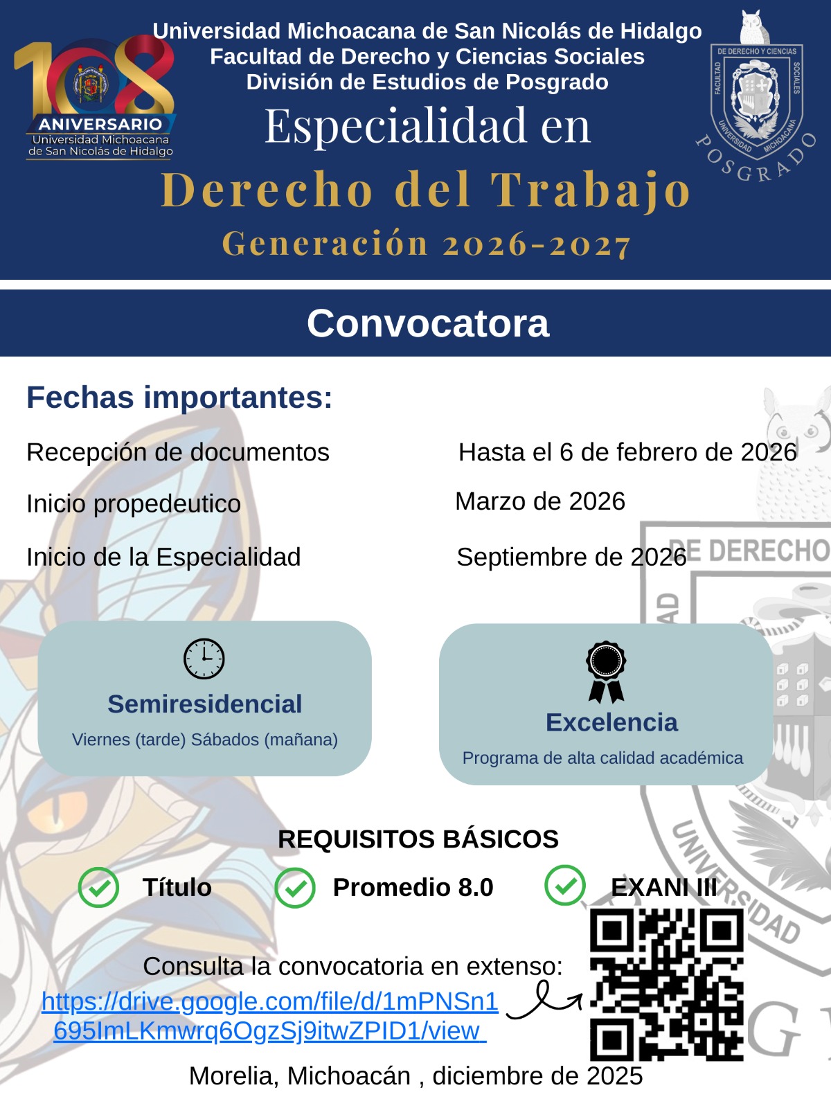 CONVOCATORIA ESPECIALIDAD EN DERECHO DEL TRABAJO